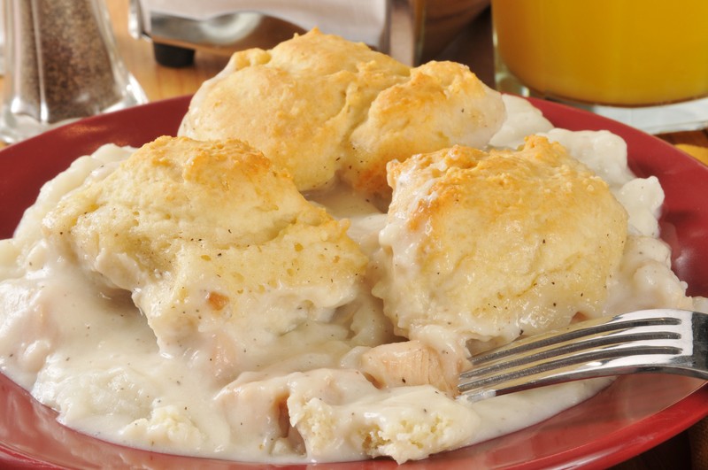 Comfort Food At It’s Finest… This dish is the epitome of comfort food for us. There’s nothing better than a hearty chicken dish where your biscuits are built in and