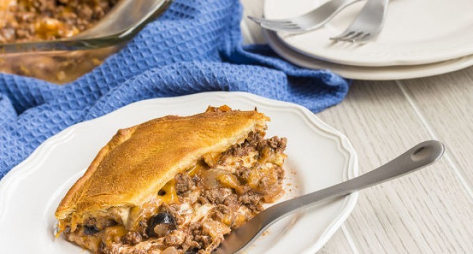 The top of this casserole has Pillsbury Crescent Rolls, which makes a nice crust to hold everything together, the meat is seasoned beautifully and the flavors are a match made in heaven.